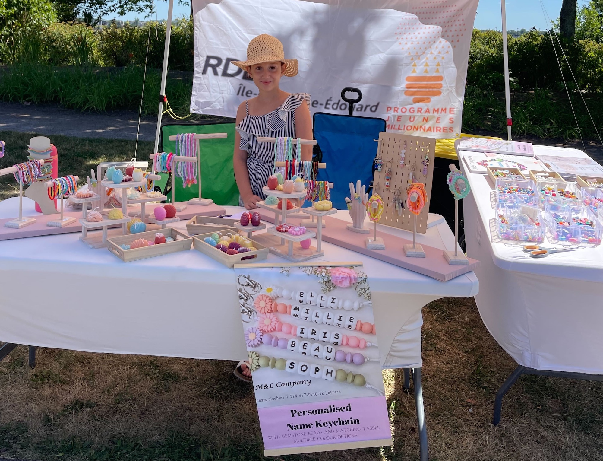 CHARLOTTETOWN – le 18 août 2025 – Une dizaine d’entreprises du programme Jeunes millionnaires de RDÉE Île-du-Prince-Édouard ont pris avantage du fait que plusieurs milles personnes étaient attendues à Fête nationale de l’Acadien à Charlottetown le 15 août. Ils ont donc installé leurs kiosques de ventes dans un lieu destiné à la vente, ajoutant ainsi une nouvelle attraction et dimensions aux festivités.