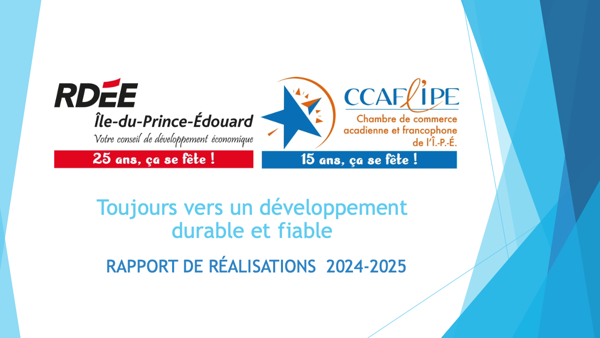 WELLINGTON – le 24 septembre 2025 – Le beau rapport de réalisations annuel 2024-2025 de RDÉE Île-du-Prince-Édouard et de la Chambre de commerce acadienne et francophone de l’ÎPÉ, qui porte le titre « Toujours vers un développement durable et fiable » est maintenant disponible pour les membres et le public.