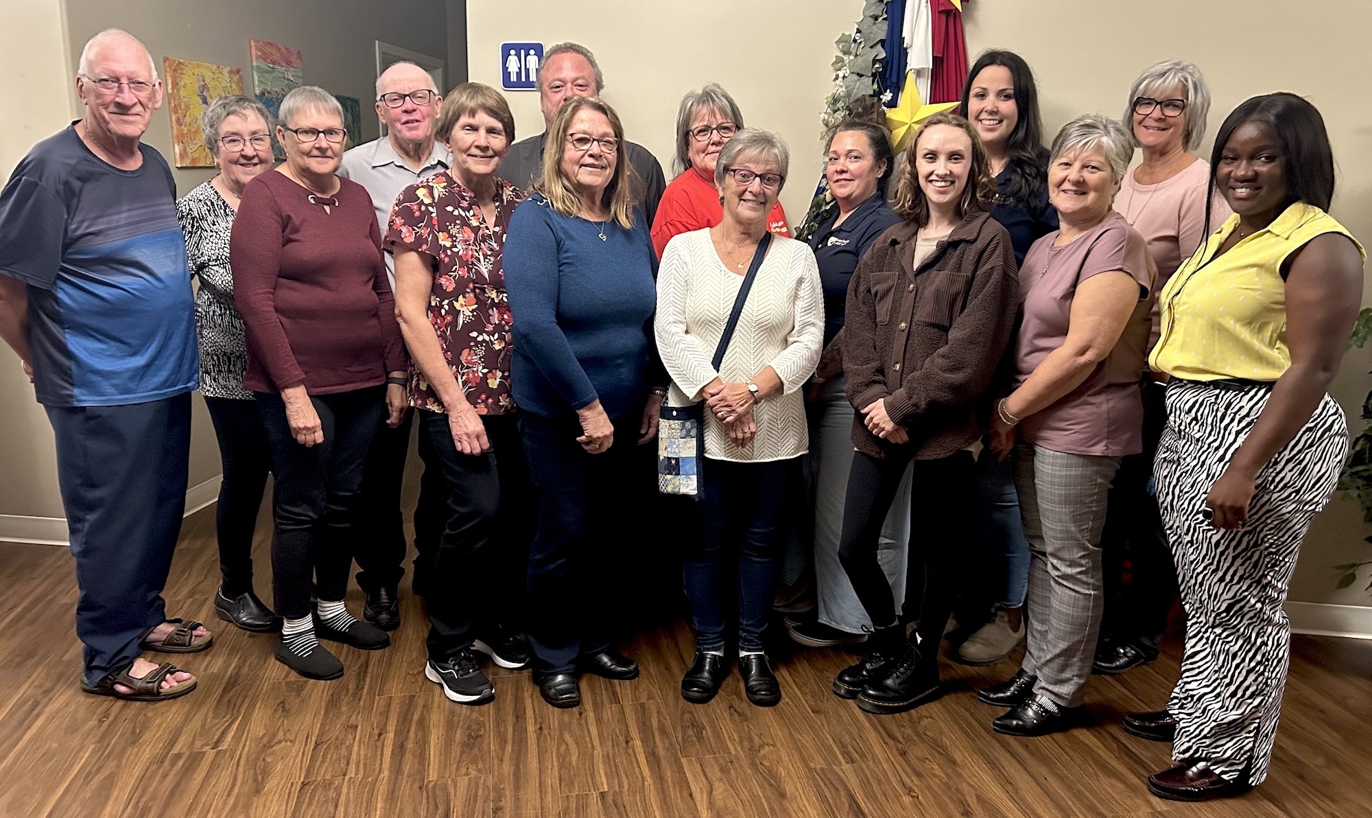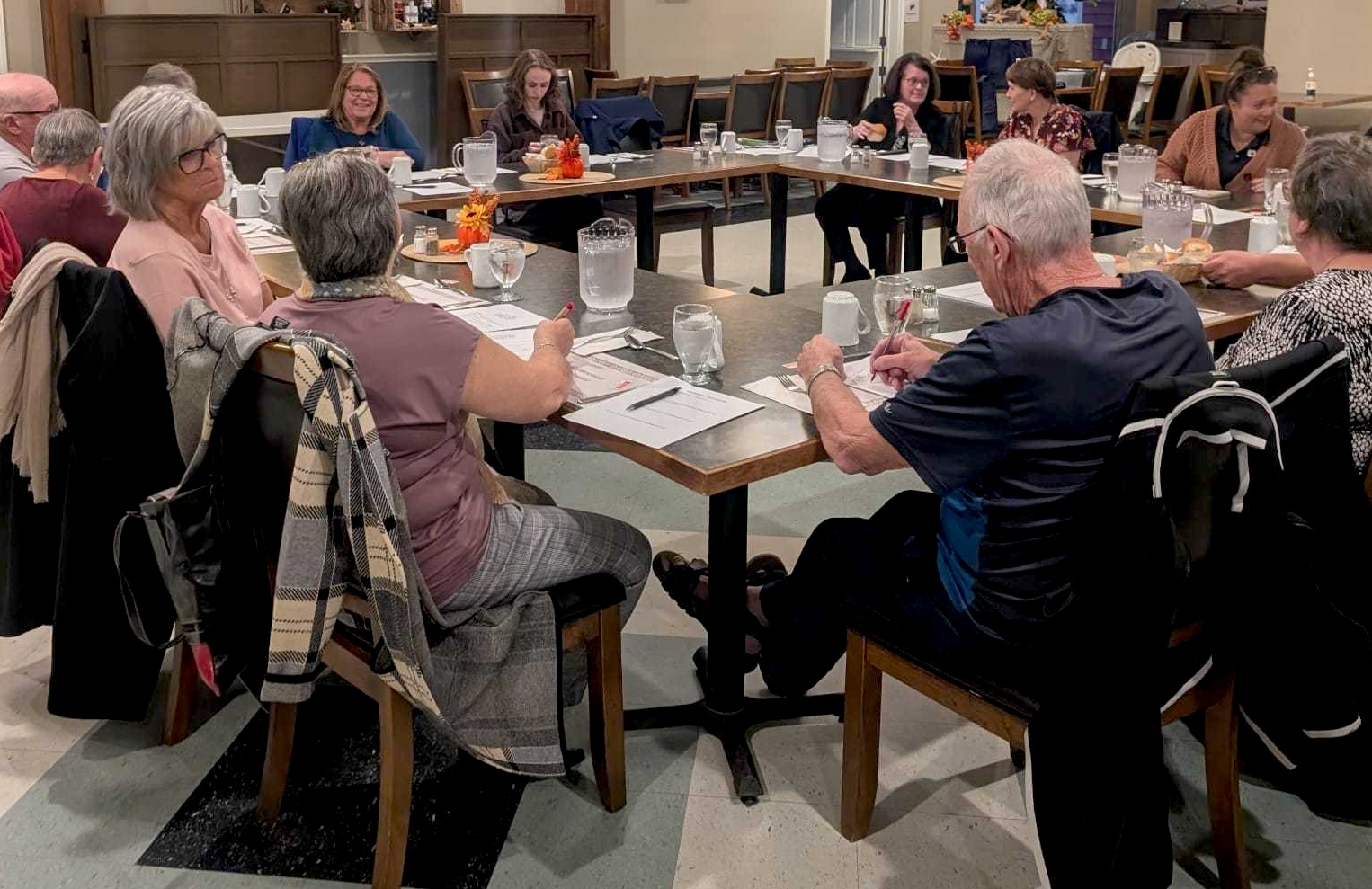 PHOTO : Au Forum des coopérateurs 2025, on aperçoit de la gauche, Edmond et Zita Gallant de la Coopérative de développement culturel et patrimonial de Mont-Carmel, Bernice et Louise Arsenault de la Coopérative funéraire Évangéline, Yvette Arsenault de la Coopérative d’artisanat d’Abram-Village, Chris O’Brien de la Coopérative de Wellington, Jeannette Blaquière de la Coopérative des artistes La Palette, Susan Gallant de la Coopérative de Wellington, Alvina Bernard de la Coopérative d’artisanat d’Abram Village, Jennifer Wagner de la Caisse populaire Provincial, Alecia Arsenault de la Chambre de commerce acadienne et francophone de l’ÎPÉ (animatrice), Jessica Gallant de la Caisse populaire Provincial, Marcia Arsenault et Linda Arsenault de la Coopérative Le Chez-Nous, et Marthe Ngombi du Centre d’action rural de Wellington (une des organisatrices du forum).