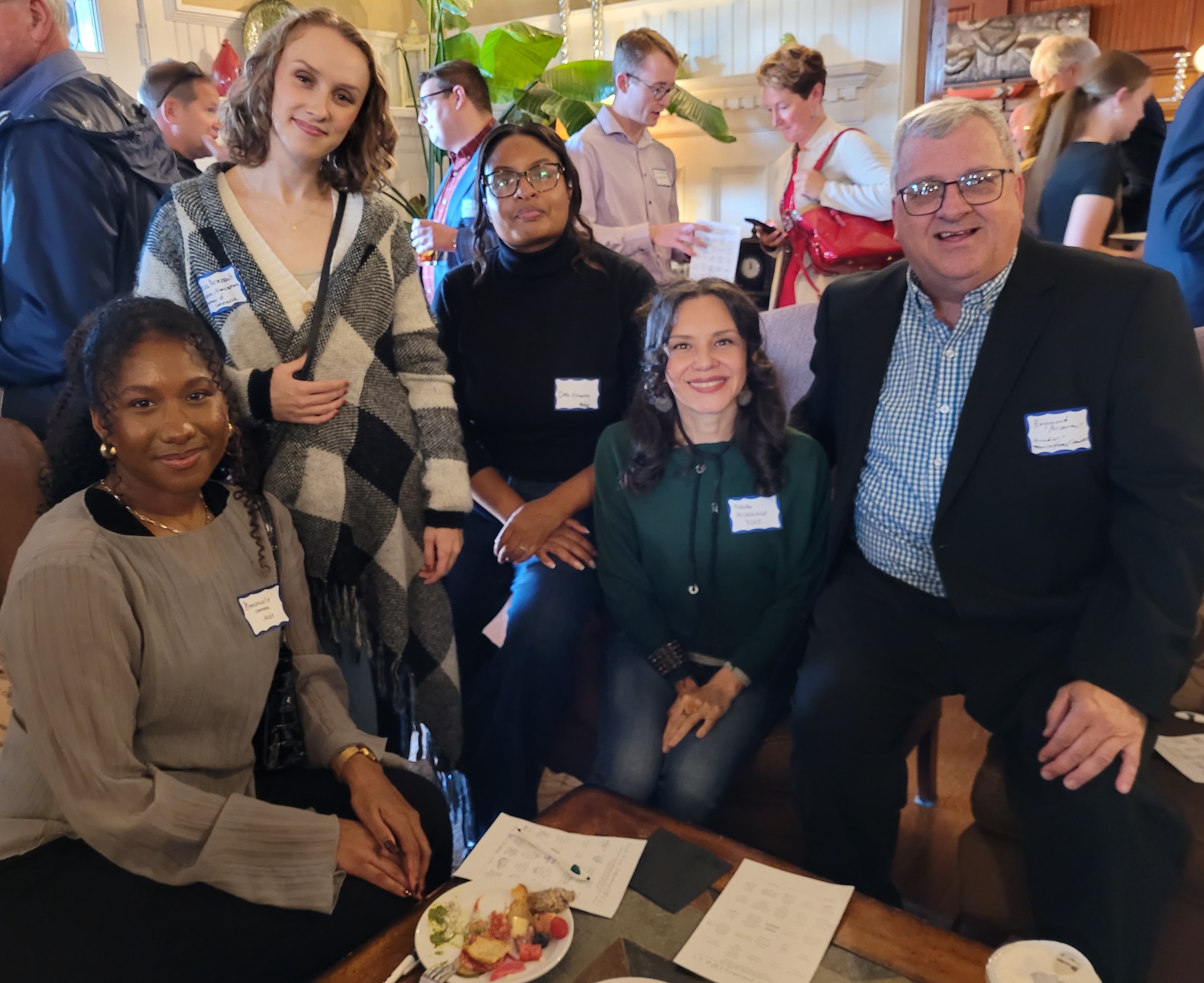 PHOTO 3 : Cinq membres de l’équipe de RDÉE Île-du-Prince-Édouard et la CCAFLIPE ont assisté au Mega Mixer 2025 à Dalvay le 23 octobre : de la gauche, Emmanuelle Camara, Alecia Arsenault, Deb O’Hanley, Natalia Saldarriaga et Raymond J. Arsenault.