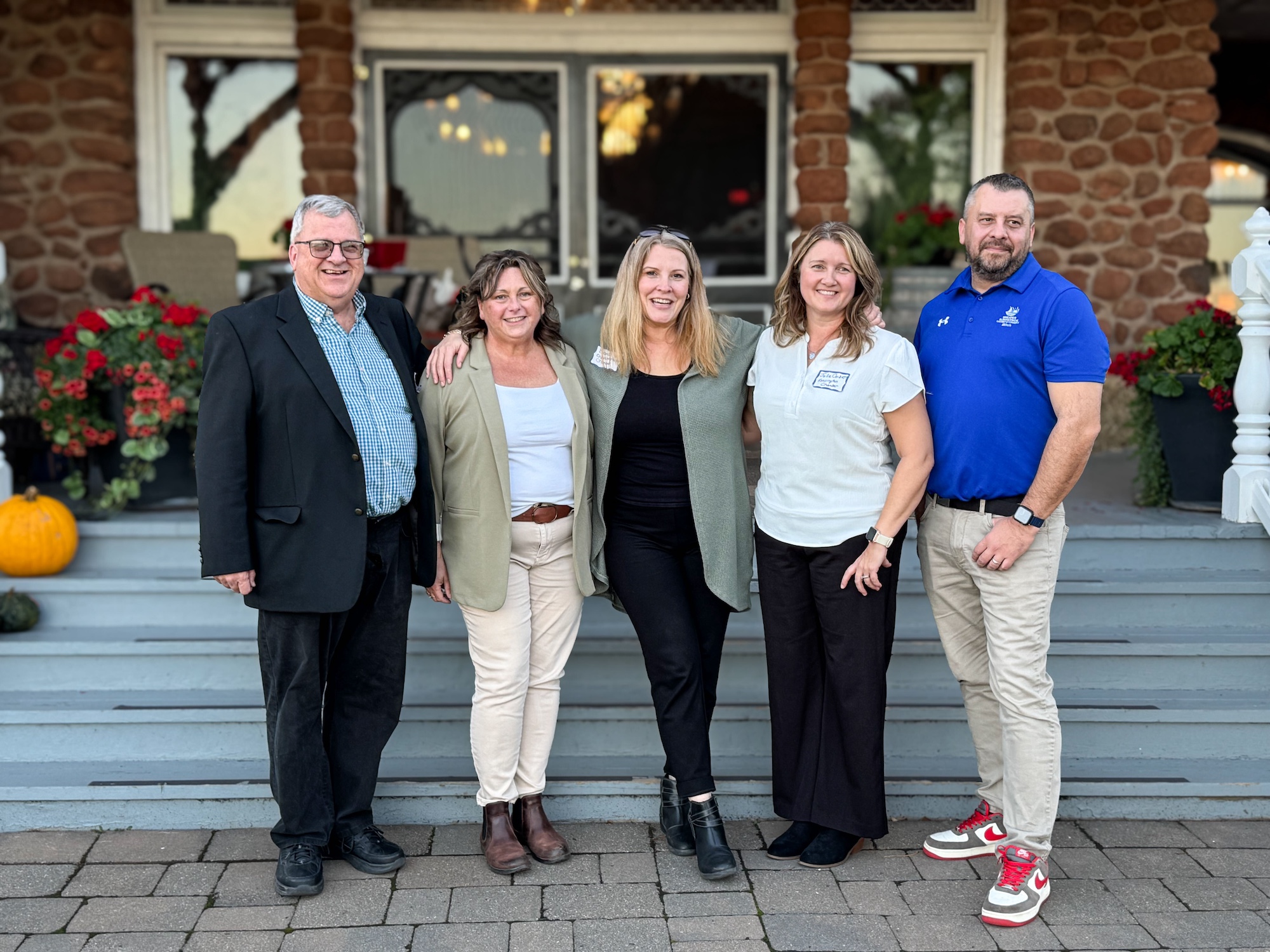 PHOTO 1 : Les gestionnaires des cinq chambres de commerce qui ont organisé le Mega Mixer 2025 à Dalvay le 23 octobre étaient ravis des résultats de l’évènement, qui a réussi à attirer plus de 100 personnes d’affaires. On voit, de la gauche, Raymond J. Arsenault de la Chambre de commerce acadienne et francophone de l’ÎPÉ, Sandra Hodder de la Eastern PEI Chamber of Commerce, Bianca McGregor de la Greater Charlottetown and Area Chamber of Commerce, Julie Corbett de la Kensington and Area Chamber of Commerce et Mitch Martin de la Greater Summerside Chamber of Commerce.