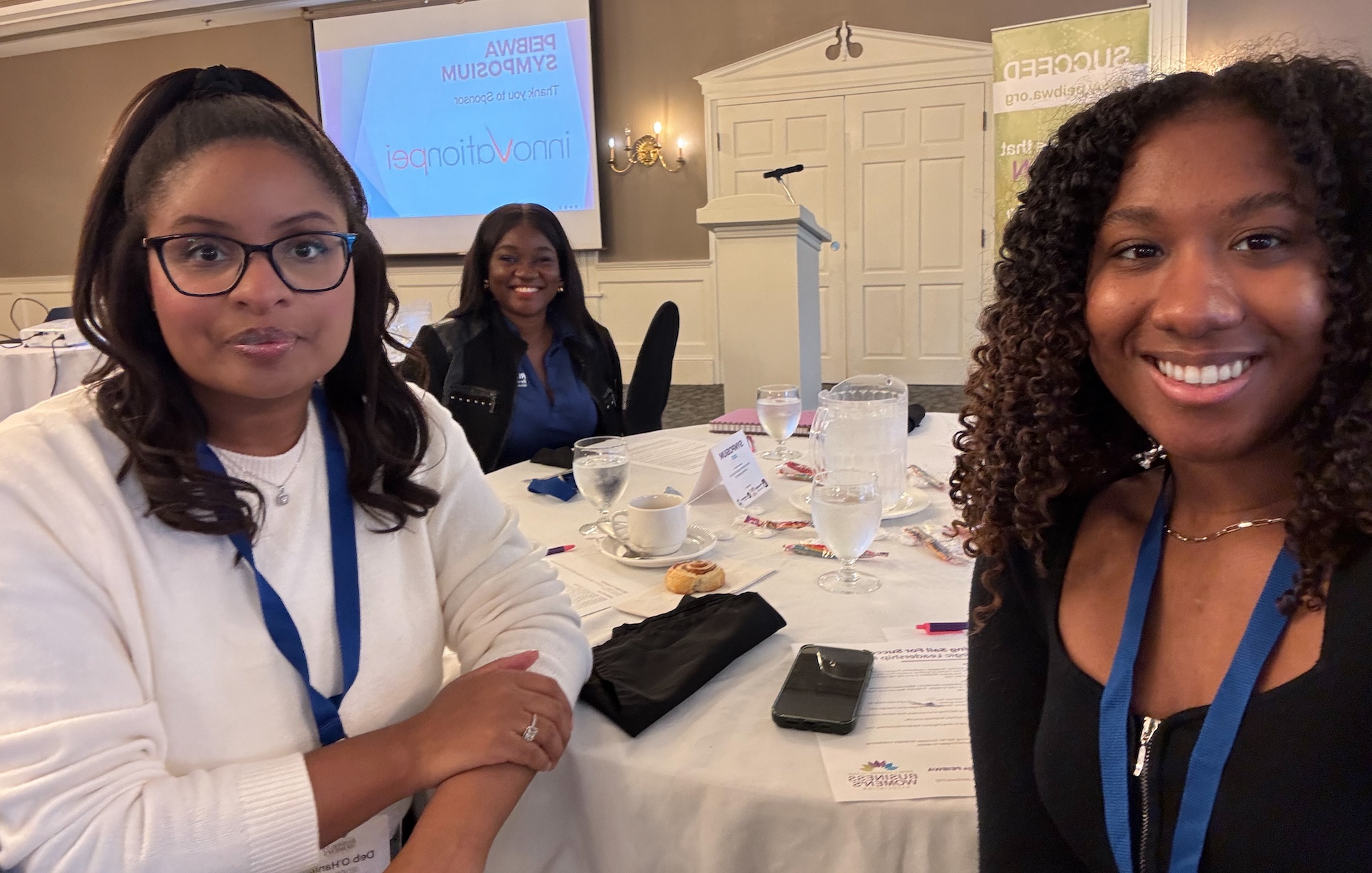 PHOTO 2 : Trois des employées du SAE de RDÉE ÎPÉ, de la gauche, Deb O’Hanley, Marthe Ngombi et Emmanuelle Camara, ont beaucoup apprécié leur journée au Symposium 2025 de la PEIBWA.