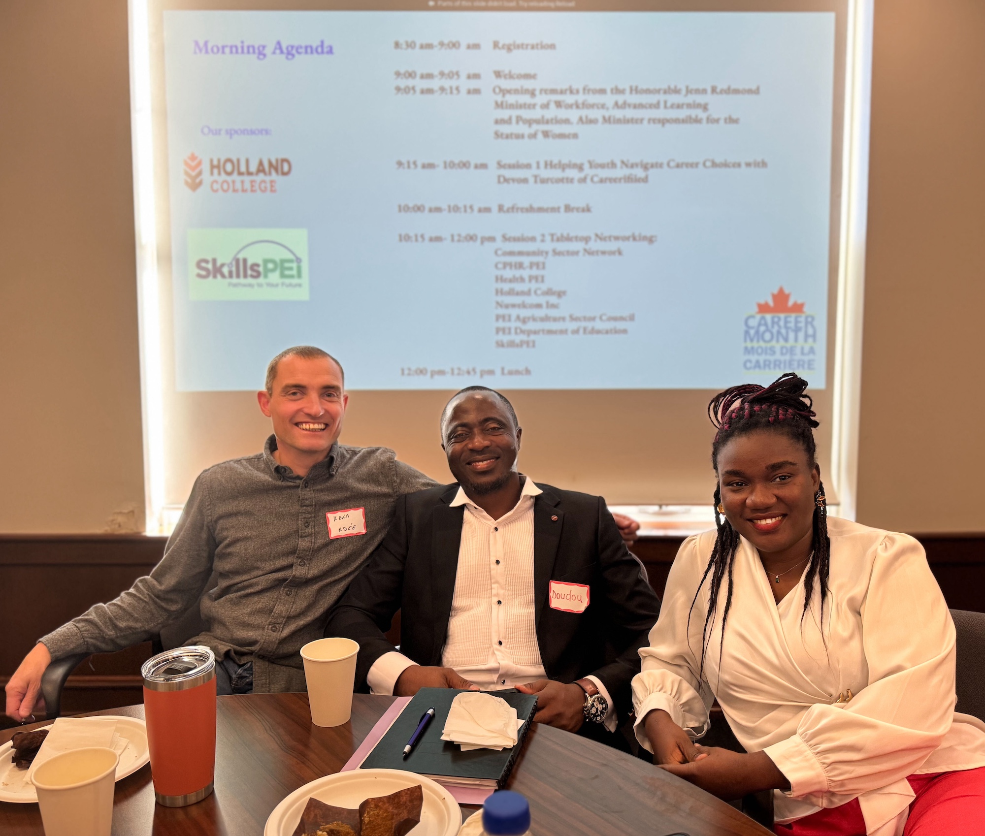 CHARLOTTETOWN – le 28 novembre 2025 – Notre équipe du Service d’appui à l’emploi a participé à une journée de formation inspirante et dynamique à l’occasion de la conférence annuelle de la Career Development Association of PEI, « Innovation, perspectives et inclusion en carrière 2025 », le 27 novembre au campus Prince of Wales du Holland College, à Charlottetown.