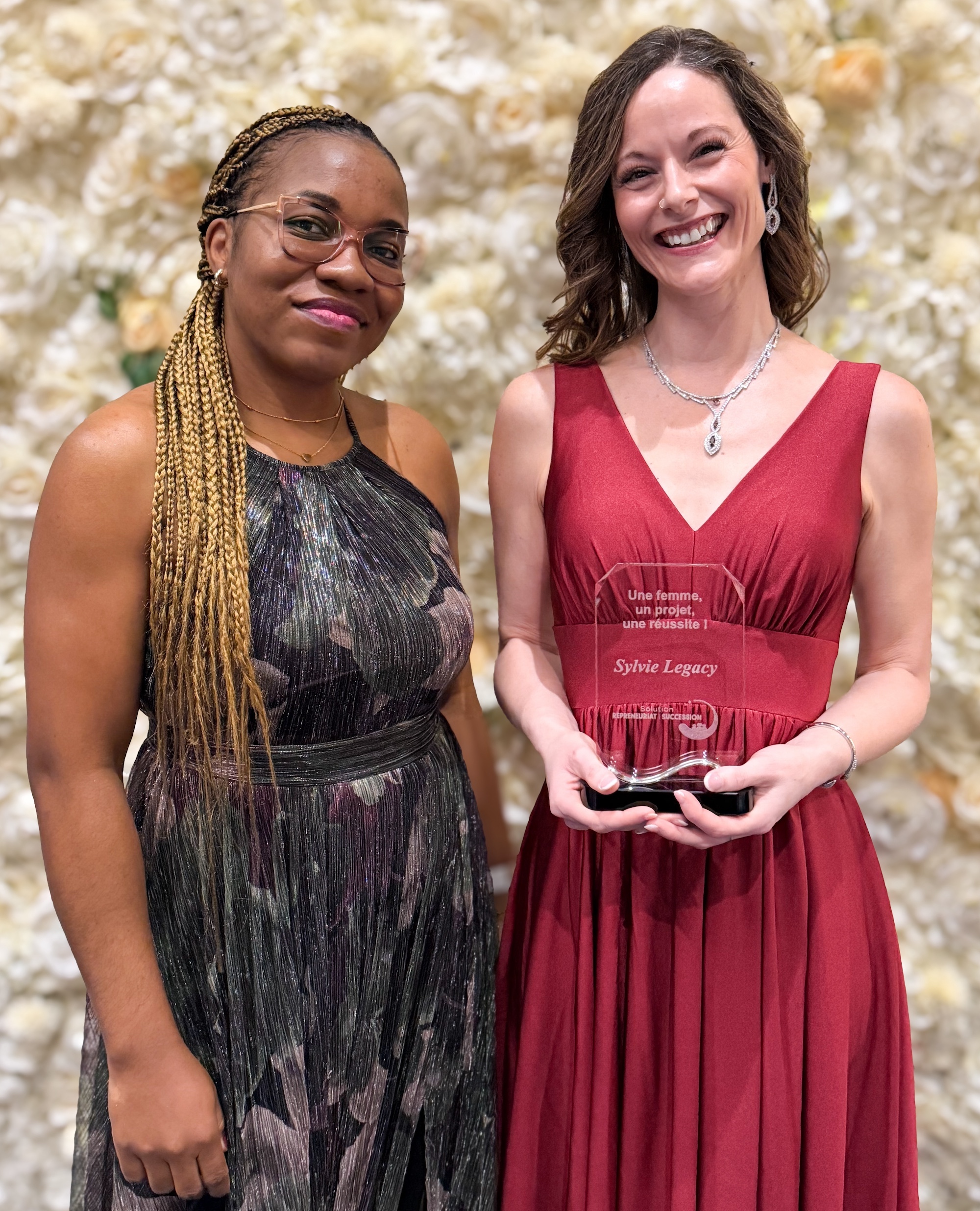 PHOTO 8 : Pour la Saskatchewan, on aperçoit la chargée de projet Barbara Elom, à la gauche, avant l’entrepreneure honorée, Sylvie Legacy.