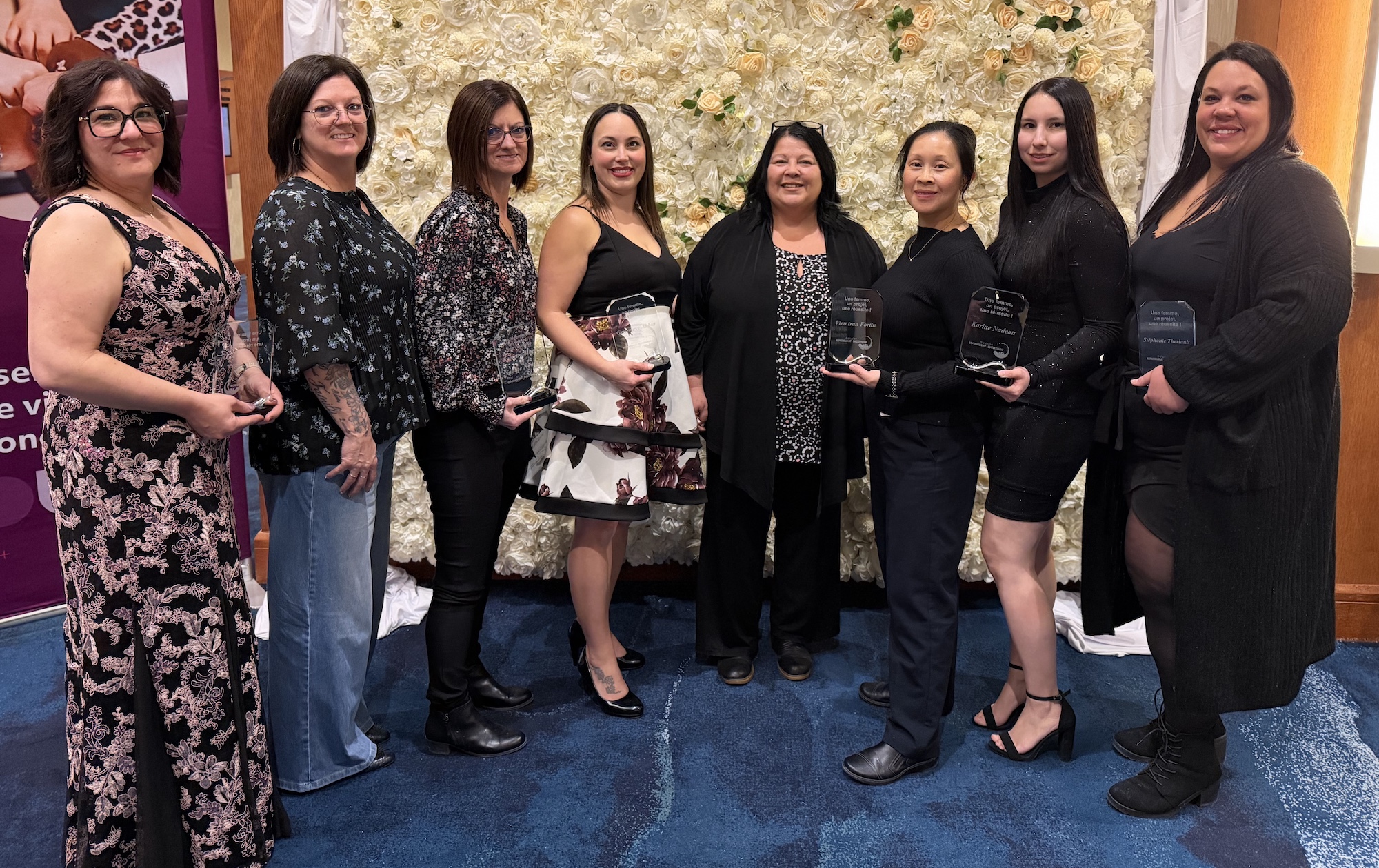 PHOTO 5 : Pour Nouveau-Brunswick, les récipiendaires francophones sont, de la gauche : Cécile Léger, Sylvette Albert, Nadine Lowlan, Geneviève Aubut, Denise Mclaughlin (responsable du volet francophone), Vien Tran Fortin, Karine Nadeau et Stéphanie Thériault.
