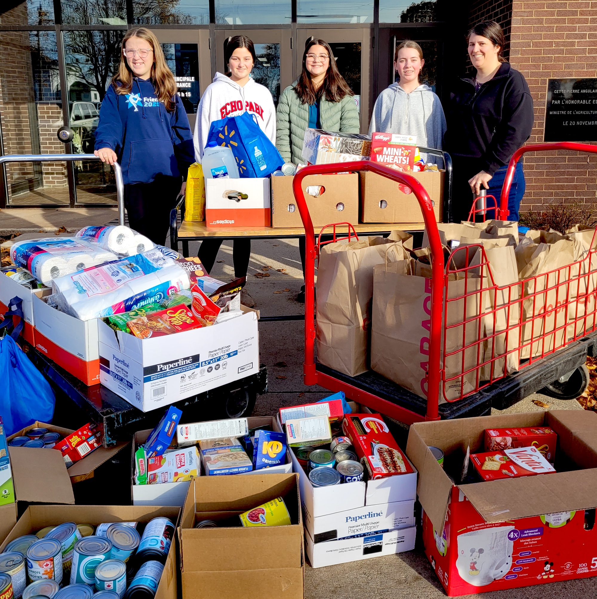 The students learned that the food bank serves the area from the Évangéline region to Portage and that their efforts will help feed many local families in need. All food contributions are given a value of $7.89 per kilogram (an amount set by the federal government).